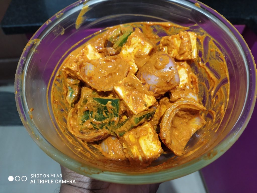 - Paneer (Cottage Cheese) – 200 gms; cut in big cubes